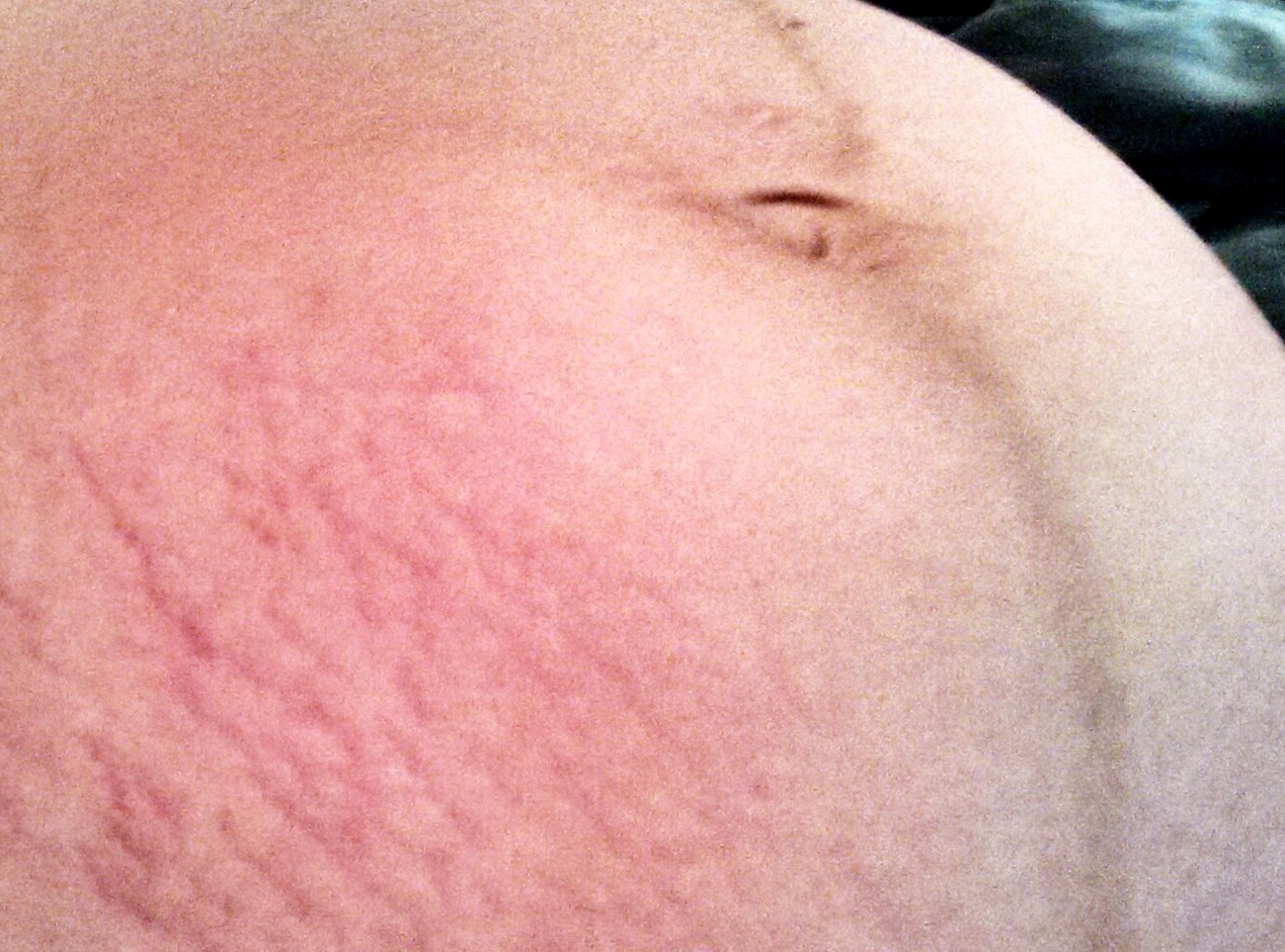 • Missing a belly button, but gained some very angry looking stretch marks